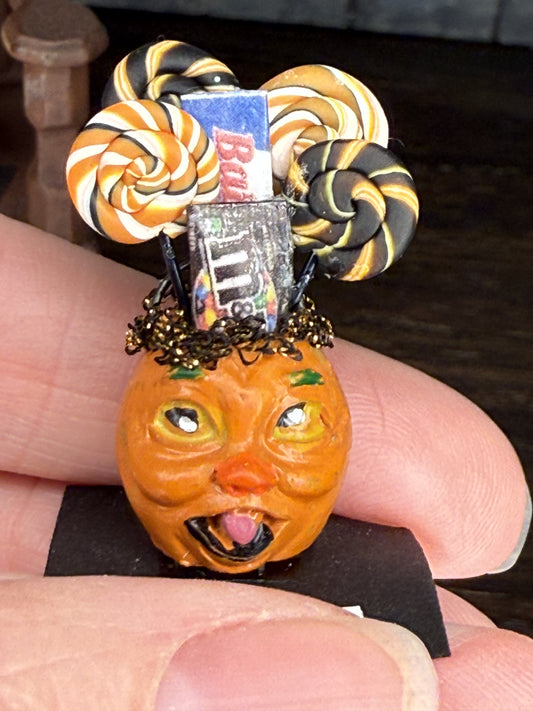 Witch stirring cauldron with black cat on jack-o’-lantern Open Book - 1:12 Scale