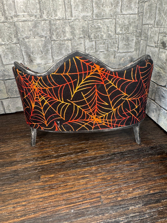Gothic Spooky Orange Cobwebs Couch in Black - Dollhouse Miniature 1:12 Scale